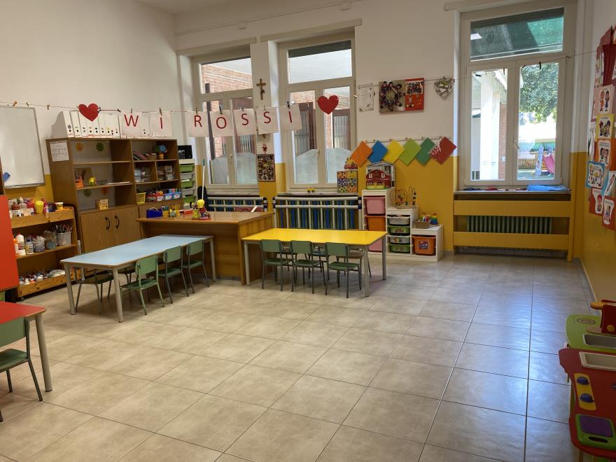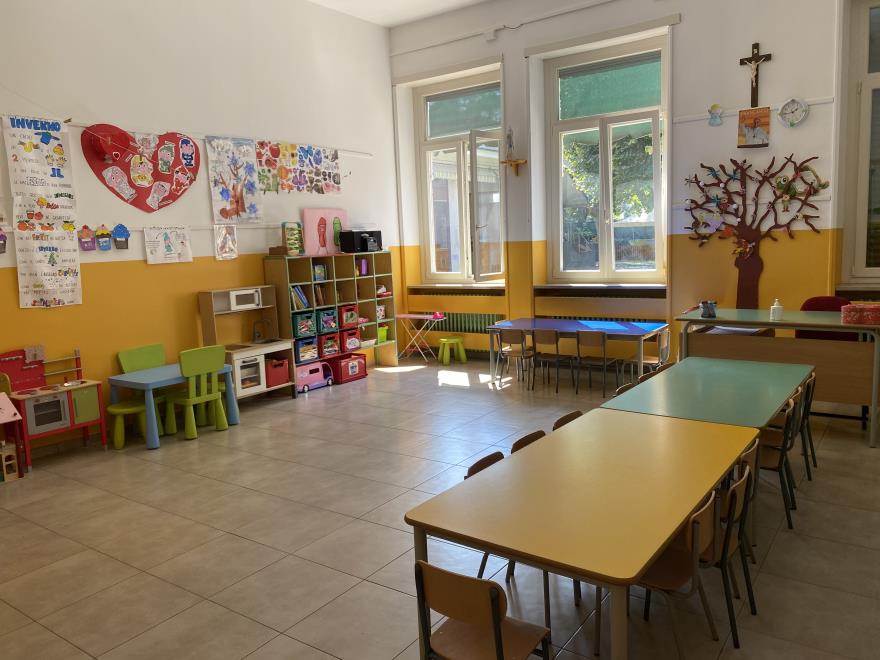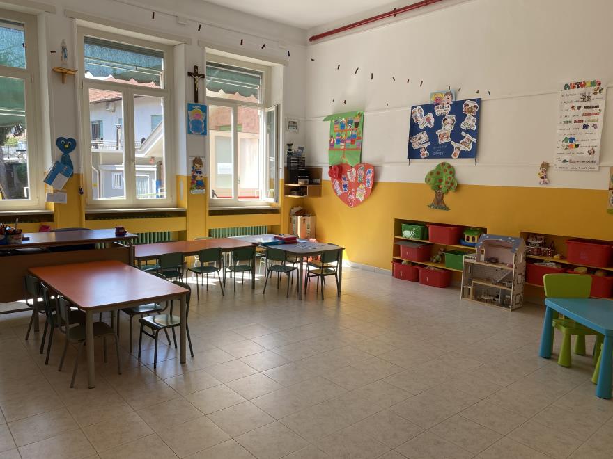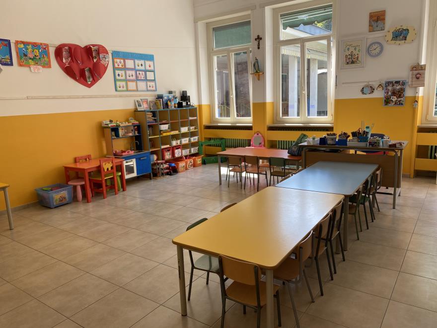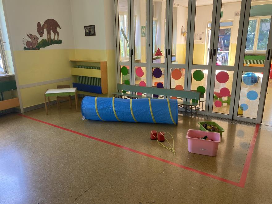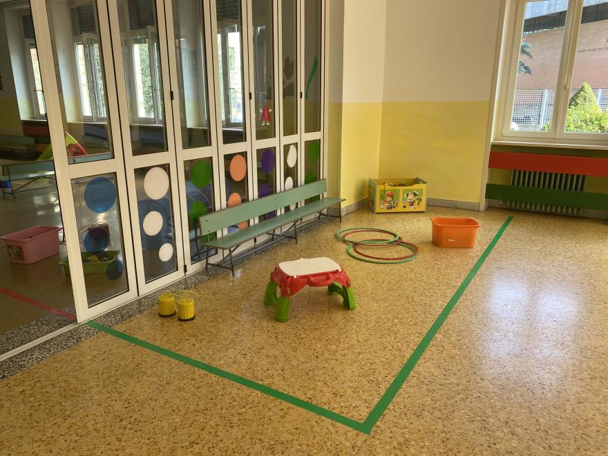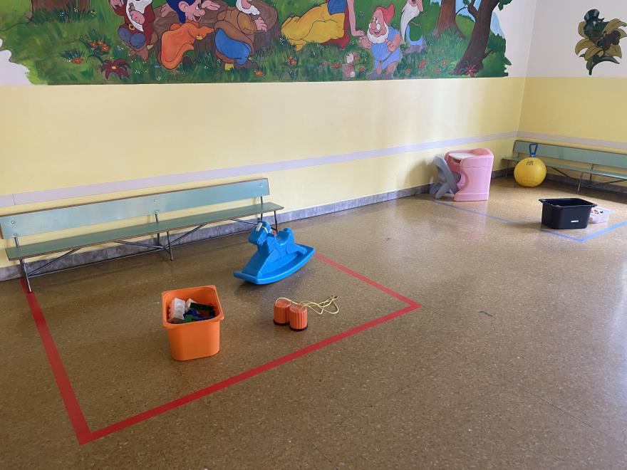 Tutti gli spazi della Scuola Materna San Matteo sono stati strutturati e modificati per garantire il distanziamento in sicurezza dei bambini e del personale durante l'emergenza sanitaria.