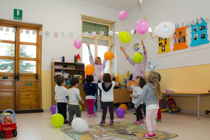 Le aule, tre al piano superiore e quattro al piano terra, sono allegre, colorate, spaziose, luminose, dotate di giochi a norma e fornite di ogni tipo di materiale utile alle attività che tutti i giorni le insegnanti propongono ai bambini.